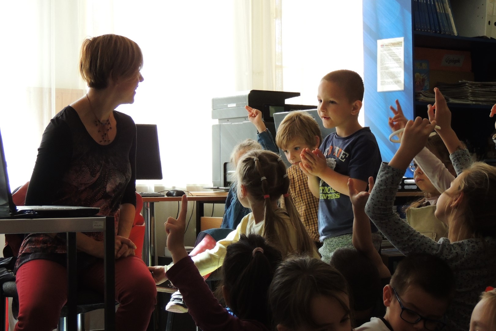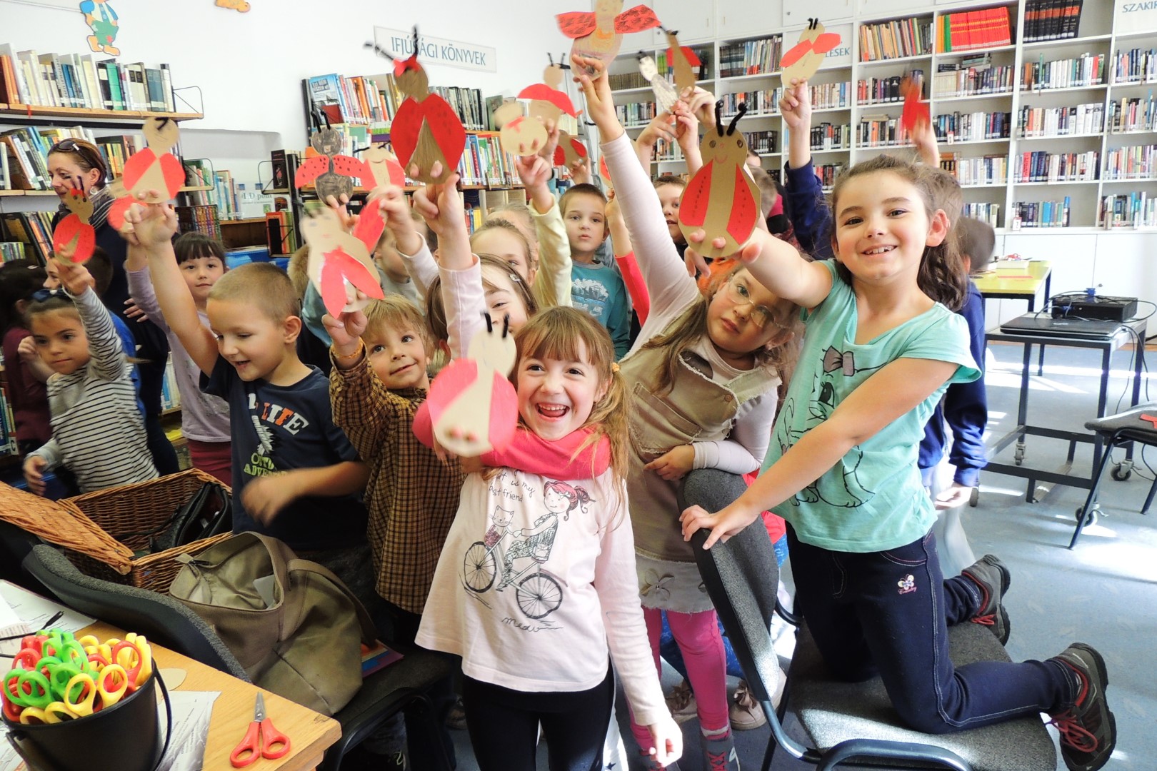 Az Országos Könyvtári Napok keretében október 4- én ellátogatott hozzánk Paulovkin Boglárka meseíró, illusztrátor. Az 1. osztályosok kíváncsian hallgatták meg A katicabogár elveszett pöttyei című meséjét, az író tolmácsolásában. Majd közösen elkészíttették saját bogárkájukat is.